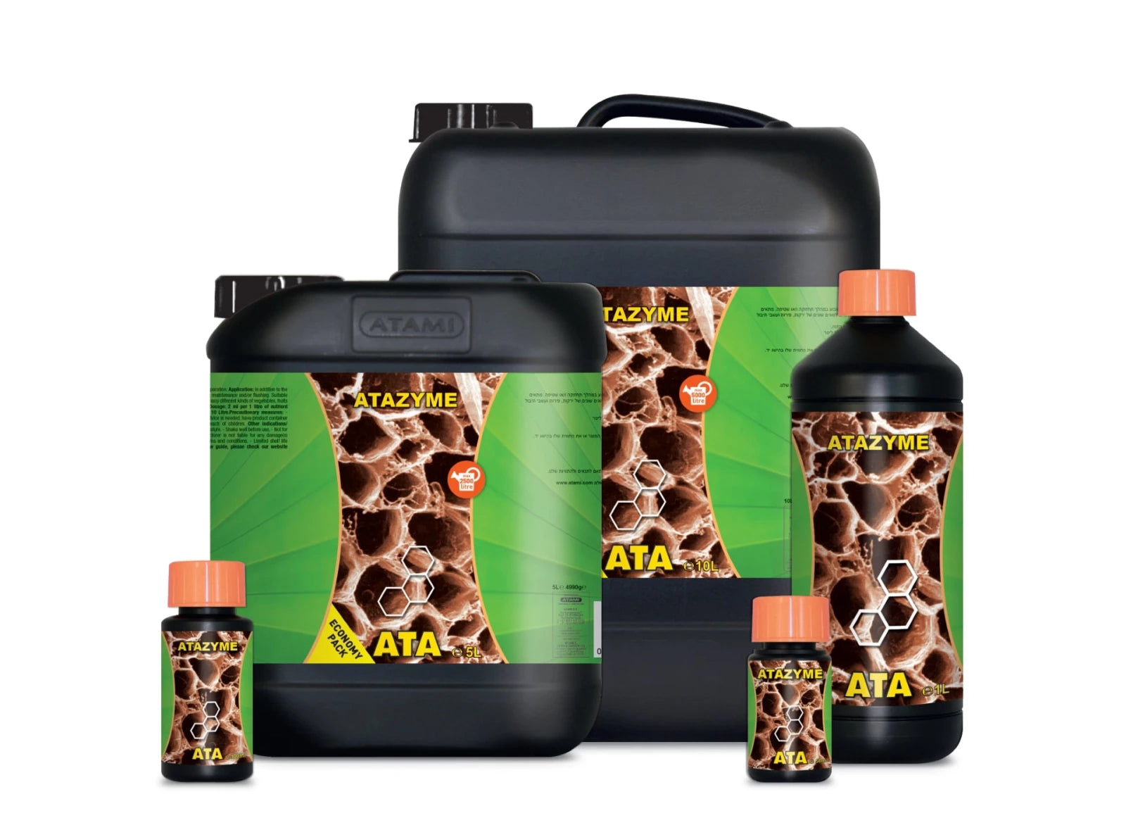 ATA ATAzyme es un mejorador del suelo universal sin NPK compuesto por enzimas. Este complemento para la solución nutritiva apenas afecta sus valores de EC. Las enzimas actúan como catalizadores y, por lo tanto, juegan un papel en la implementación de reacciones bioquímicas al acelerarlas y/o hacerlas posibles.