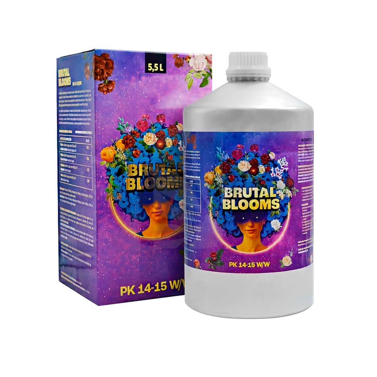 El Brutal Blooms es un estimulador de floracion de composición organo-mineral diseñado para realzar el crecimiento y la salud de tus plantas durante la etapa crucial de floración. Este producto es adecuado para todo tipo de cultivos y está disponible en diversas capacidades: 0.06, 0.3, 1.25, y 5.5 litros.