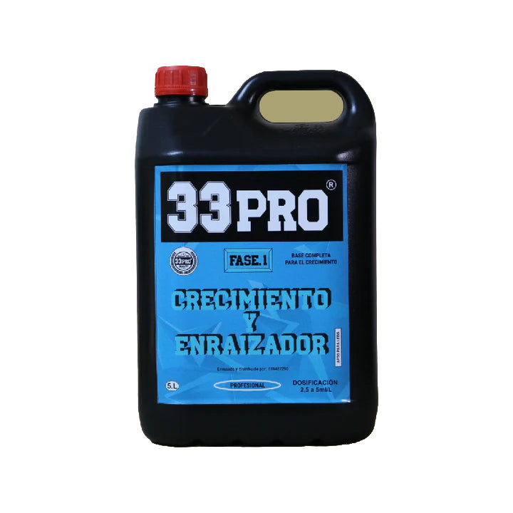 CRECIMIENTO Y ENRAIZADOR 33PRO es un fertilizante compuesto que no solo promueve un crecimiento exuberante en la parte aérea de las plantas, sino que también mejora la formación y el desarrollo de las raíces. Esta dualidad asegura que las plantas no solo crezcan más rápido sino también más fuertes y saludables.