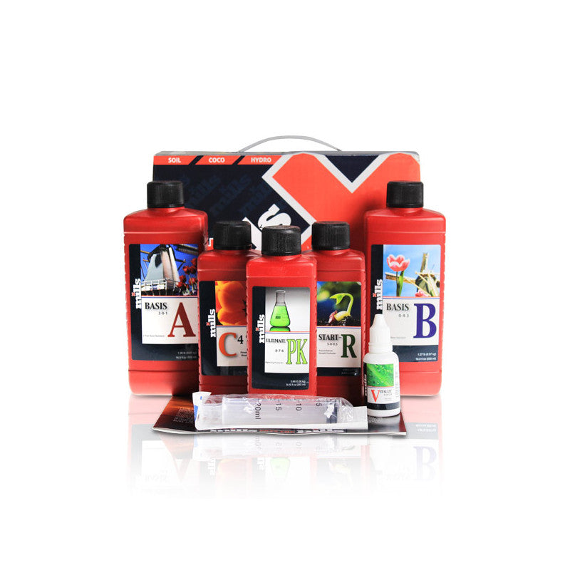 Starter Pack de Mills permite utilizarlo en medios de cultivo como tierras Light y All mix, hidropónia y fibra de coco obteniendo resultados excelentes un gran éxito en todos ellos.