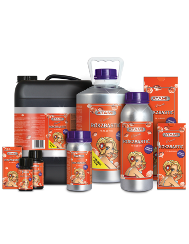 ROKZBASTIC de atami es un densificador de cogollosy flores. Rokzbastic es elabono finalizador de cultivoideal, con un alto porcentaje de Potasio, Fósforo y Hierro para obtener ese extra en las últimas semanas que dará a tu cosecha mayor peso y dureza.