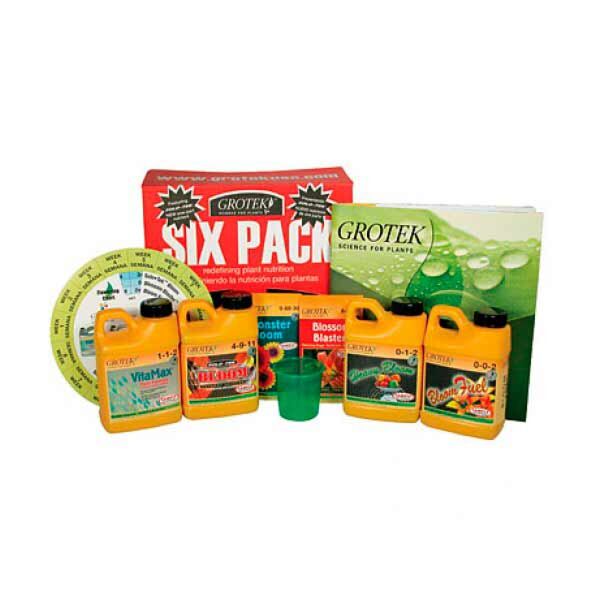 El Grotek Six Pack, todo el poder de la floración en un pequeño paquete. Es la forma mas fácil y más rentable de proporcionar a tus plantas todos los productos más populares de grotek.