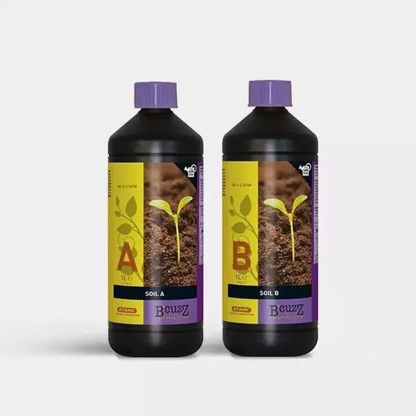 Soil Nutrition A+B de B'cuzz para cultivo en tierra es una fuente de alimentos base para tus plantas a la que añadir los aditivos de la gama Atami B´Cuzz y así conseguir mejores resultados.